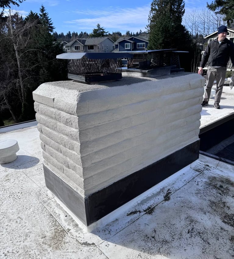 crown repair, flashing replacement, liner installation, waterproofing, acid wash, and cleaning.